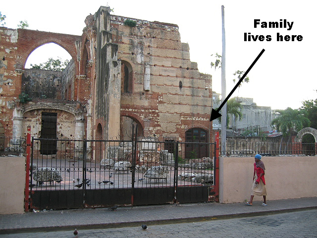 Trip to Dominican Republic (January 2006)History of Santo DomingoThe east gate outside the Catedral de Santo Domingo (a.k.a. Catedral Basilica Menor de Santa Maria). The front of the Catedral de Santo Domingo, looking through the Parque Colón (Columbus Park; the main square in Zona Colonial). This park is a meeting place for locals, plus a good place to find an official guide to take you on a walking tour of the area. Christopher Columbus 'discovered' America in 1492, including San Salvador, Cuba, and Hispaniola (the island containing the Dominican Republic). Lucinda next to a statue of Cristoval Colón (Christopher Columbus; not shown) in the main square. The woman on the statue is a Taino indian maiden who, according to legend, was the first native woman to learn Spanish. She apparently was in love with Cristoval Colón, but was later executed because the Spanish were afraid she would betray them. A plaque outside Hospital San Nicolas. The hospital was built in 1503, and survived earthquakes, hurricanes, Drake's invasion, and was virtually intact until 1911 when it was devastated by a hurricane. Craig in the arch (seen in the center of the previous picture) of Hospital San Nicolas. Inside the hospital. The floor plan follows the pattern of a Latin Cross. See the wood door on the right in this picture? I was surprised to find that there is a family living inside. (Click for another view of where the family lives.)