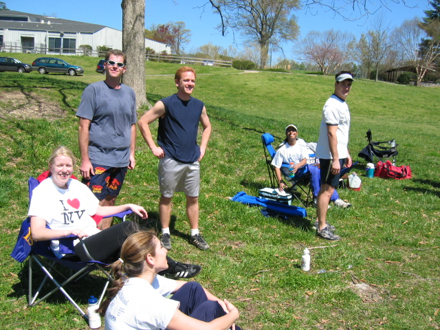 Karen Stewart (orange shorts), Brian Preston, David Kam, David Swink (partially blocked).